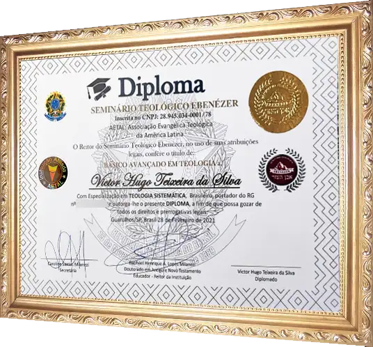 Todos nossos diplomas são reconhecidos internacionalmente e possui selo de Qualidade! Ao finalizar seu Curso, você terá acesso ao seu Diploma. Entregaremos pessoalmente em formatura ou enviamos pelos correios. Você terá um diploma de uma das mais conceituadas Escolas Teológicas da América Latina.