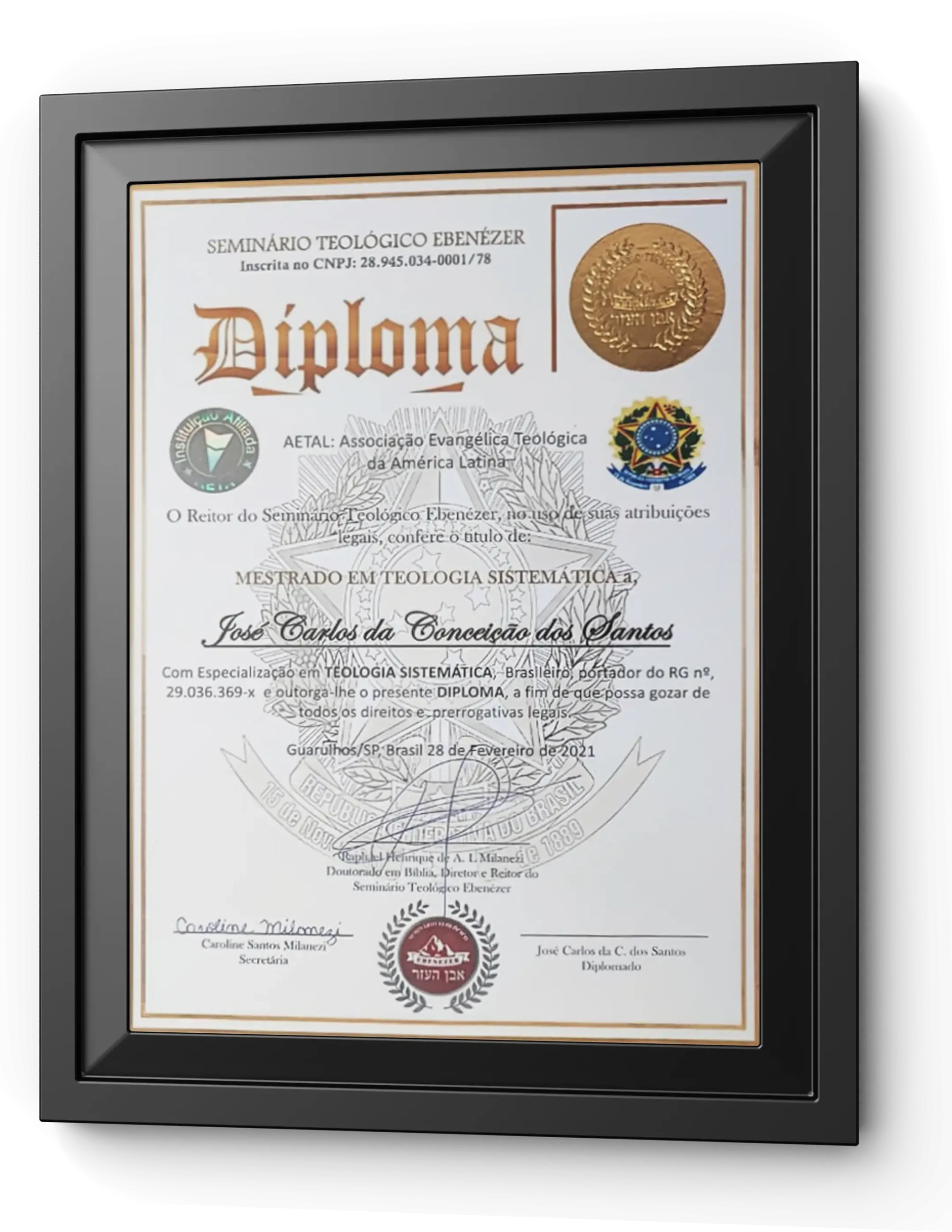 Todos nossos diplomas são reconhecidos internacionalmente e possui selo de Qualidade! Ao finalizar seu Curso, você terá acesso ao seu Diploma. Entregaremos pessoalmente em formatura ou enviamos pelos correios. Você terá um diploma de uma das mais conceituadas Escolas Teológicas da América Latina.